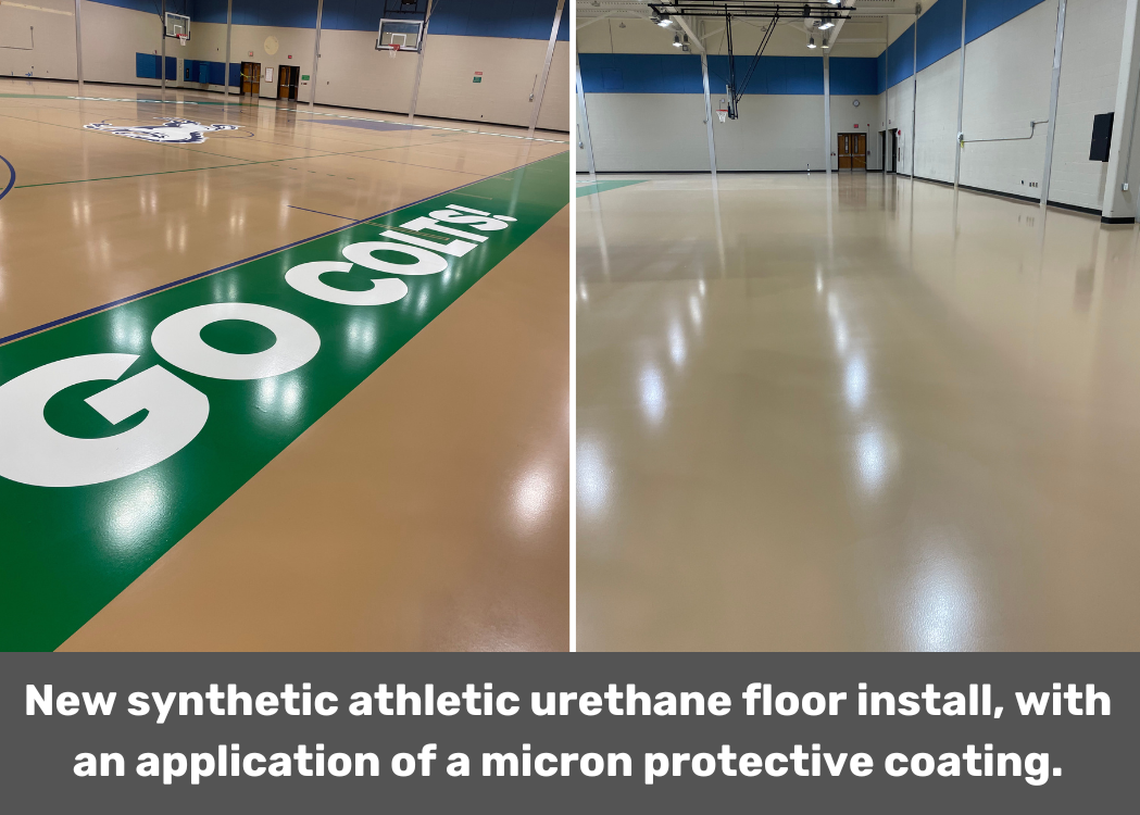 This is painted epoxy school logo and field lanes sanded.