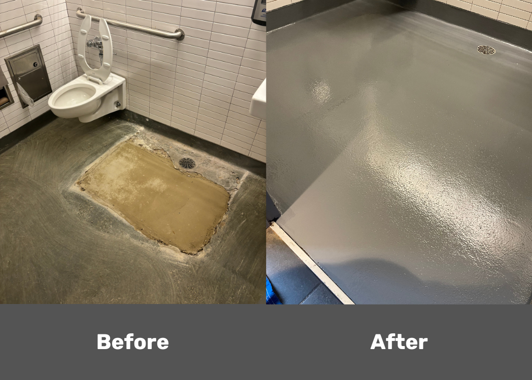 After repairing the drain in a restaurant, we followed with new urethane cement.